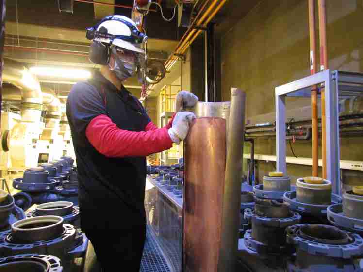 尊龙z6将废弃物转化成有效的工业或民生原物料,,,,图为废铜液淬炼后再制成纯度极高的铜管