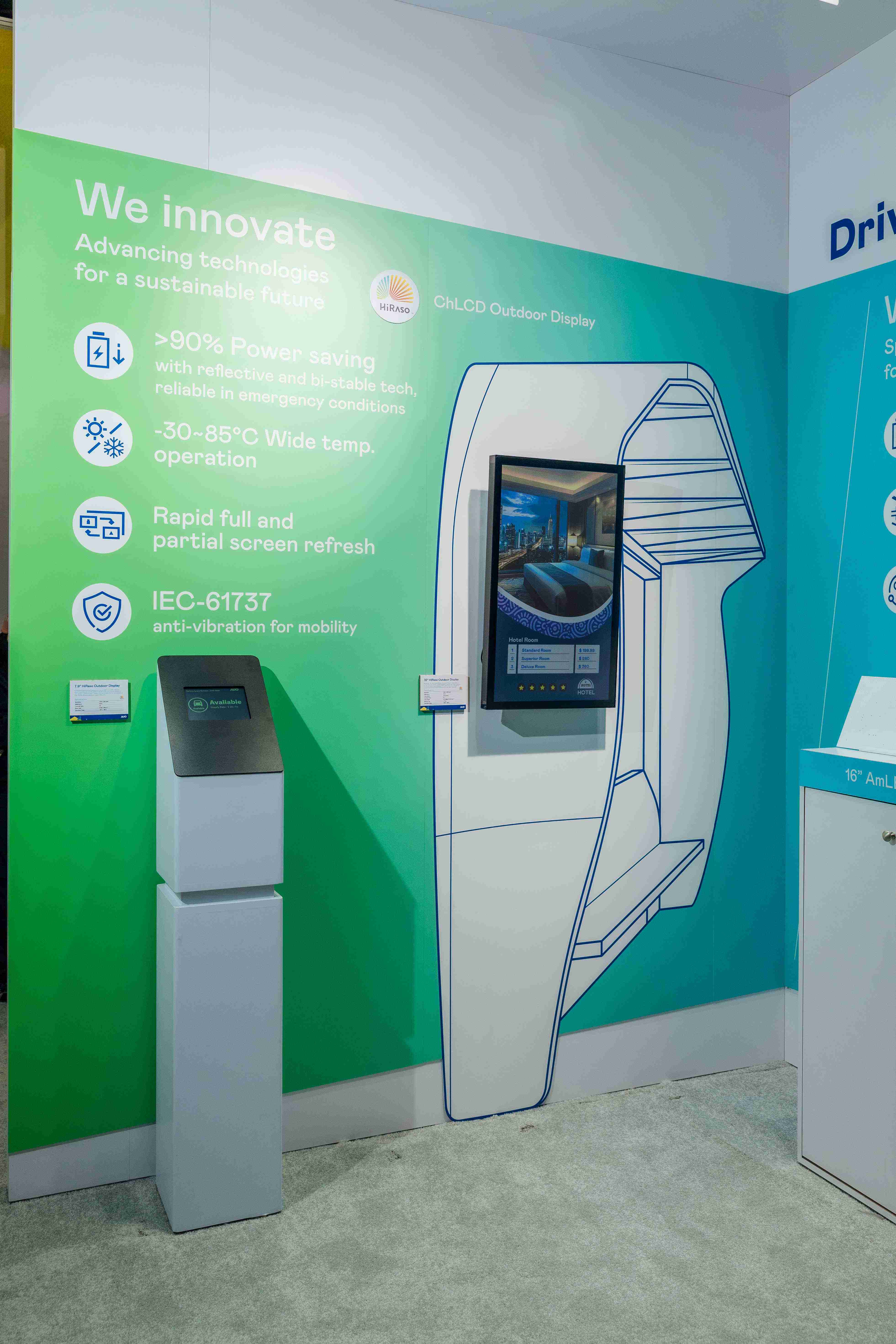 HiRaso胆固醇液晶显示器运用反射环境光线的方式,,,,呈现影像显示时零耗能的环保省电诉求,,光线愈强愈能呈现绝佳的色彩饱和度及显示效果,,,同时在摄氏-30度至85度间宽温的使用优势,,,,为户外电子看板的新首选。。。
