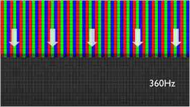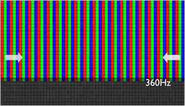 传统液晶驱动是从左到右单向进行,,,在画面更新速度愈来越愈快的情况下,,,,位于驱动线路末端的右下角区域,,,,画素的闸极来不及在短时间内获得足够电压,,,无法显示出正确的颜色资讯。。