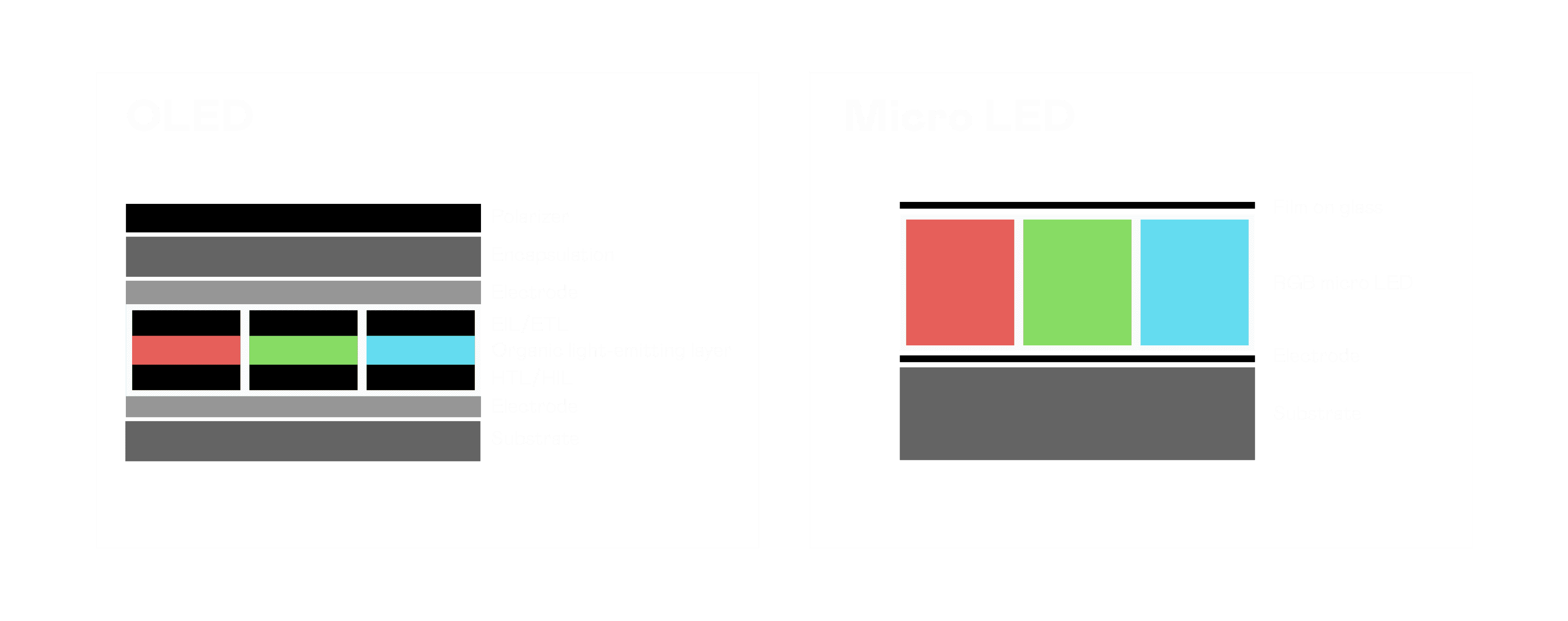 以 LED 做为显示画素,,可让 LED 的发光效率发挥到极致,,,,从而让显示器具备优异的亮度表现,,,,不论是在户外或室内,,均具备出众的显示效果。。同时,,与使用有机材料的 OLED 相比,,LED 具备更稳定、、寿命更长的特性,,,不仅不会有画面烙印问题,,,而且更不容易出现故障、、、坏点。。